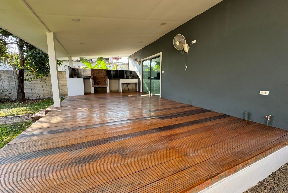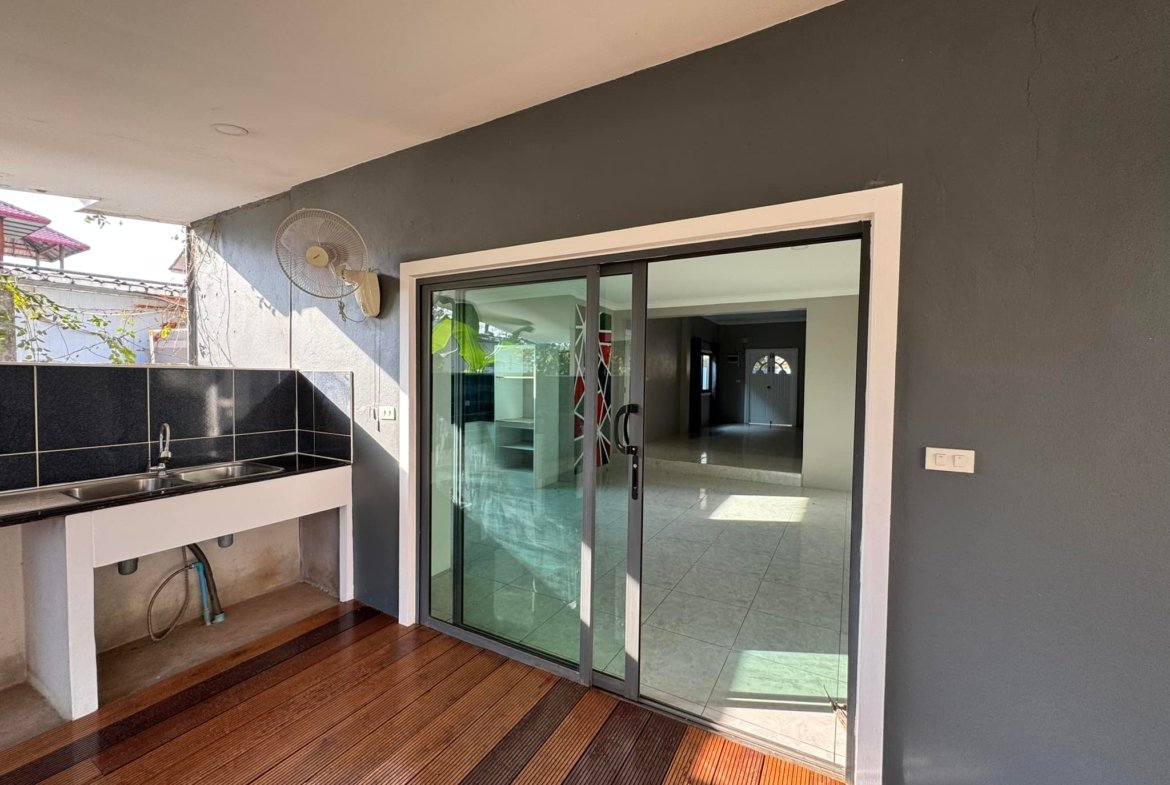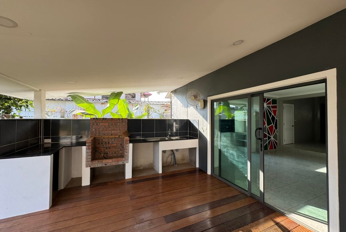 มีระเบียงหลังบ้าน พร้อมกับที่ทำปิ้งย่าง และครัว